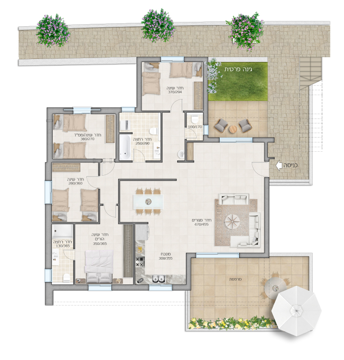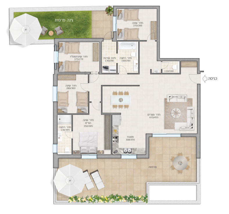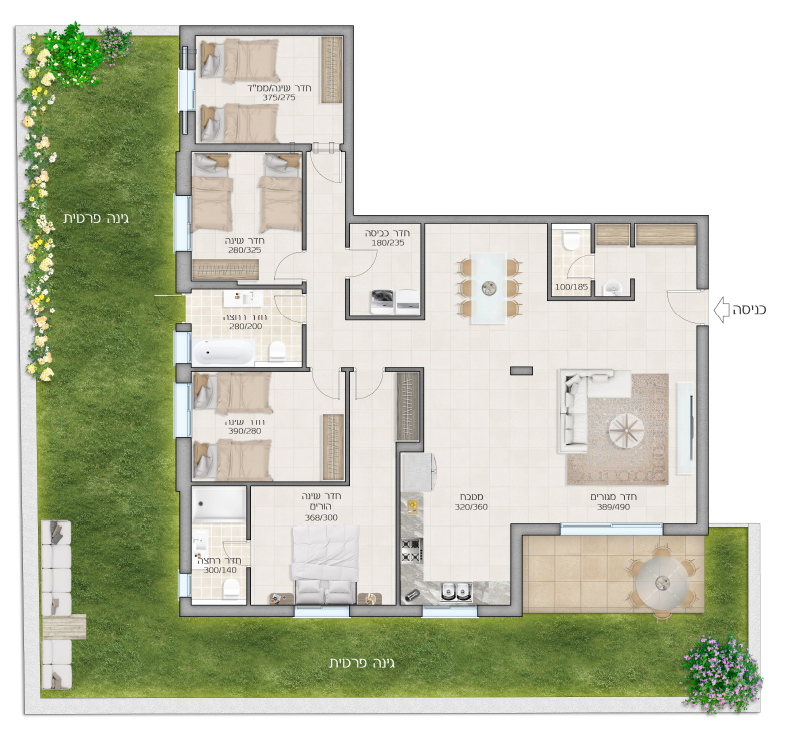 5 חדרים143 מ״ר+ חצר פרטית+ מרפסת 33 מ״ר