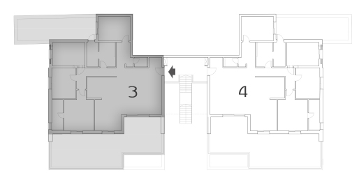 סכימת מיקום בקומהדירה 4 היא תמונת ראי של דירה 3