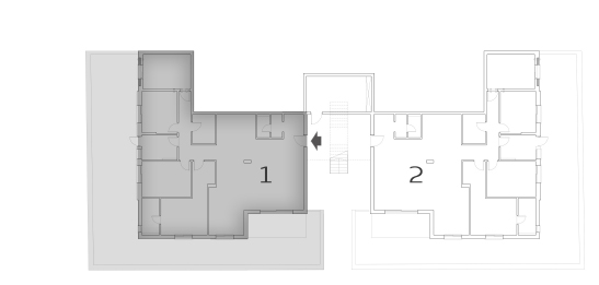חצר פרטית בהתאם לתכנית פיתוחסכימת מיקום בקומהדירה 2 היא תמונת ראי של דירה 1